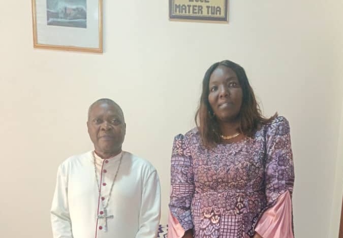 Ituri : Faraha Saidi présente l’évolution des travaux de construction du Presbytère et de l’église catholique à l’évêque du diocèse de Bunia à irumu