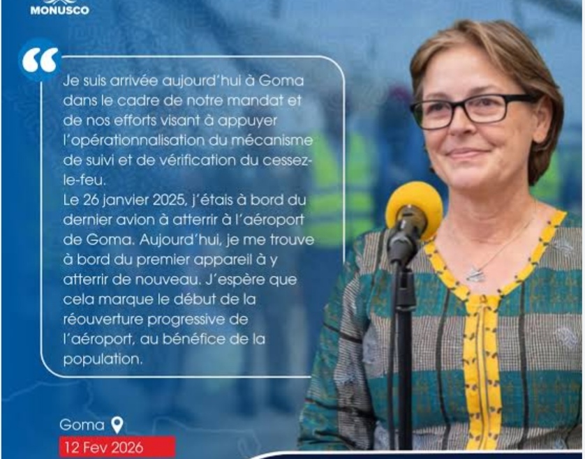 La Cheffe par intérim de la Mission de l’Organisation des Nations Unies pour la stabilisation en République démocratique du Congo (MONUSCO), Vivian van de Perre, a effectué une visite officielle à Goma le 12 février 2026, marquant une étape cruciale dans les efforts de soutien au cessez-le-feu et à la stabilisation de l’est du pays.